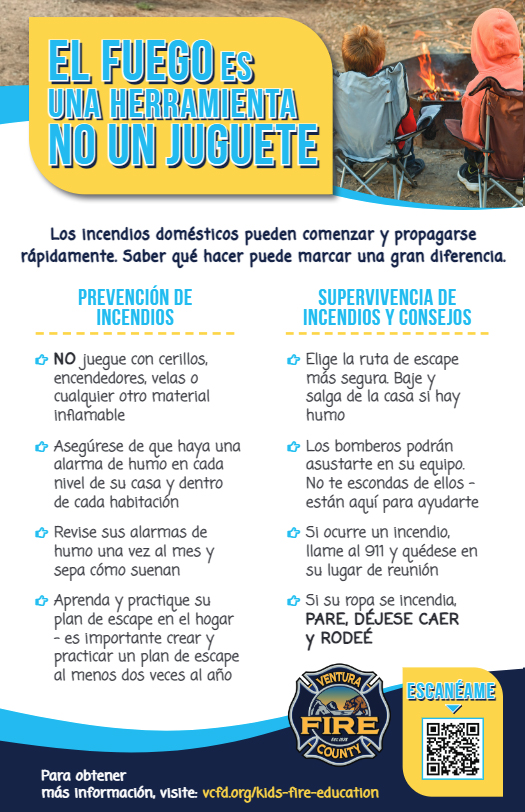 Kids love to play with toys. And young boys are often especially fascinated with fire and flames. It’s best to teach your kids from a very young age—fire is not a toy; and it’s certainly not something to play with or take lightly. Teach your kids right–and right now–by viewing and downloading the helpful Kids Fire Education Flyer in English or Spanish.
